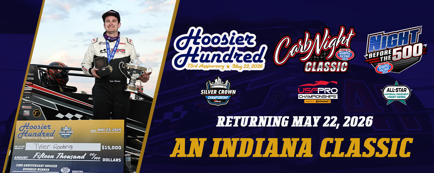 The 73rd Edition of the Hoosier Hundred will once again join the Carb Night Classic line-up with the USAC Silver Crown Series, in addition to the USF2000 Championship presented by Continental Tires, USF PRO 2000 Championship presented by Continental Tires, and All-Star Pavement Midgets.